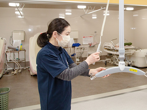 サン・スマイルさんでは、そうしたICT以外にも、走行式電動介護リフトなど積極的に利用されていますね。 |